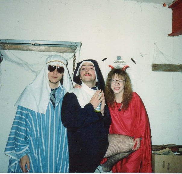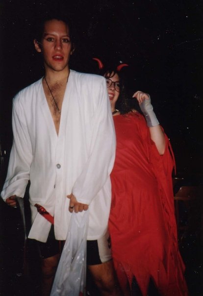 I don't have any pictures from when I was a kid, but here are some from late teen and early 20's. I used the same outfit a few times. My high school sweetheart and I had a couple of killer costume parties. This first pic is he and I and another friend. I was the devil, he was the nun.